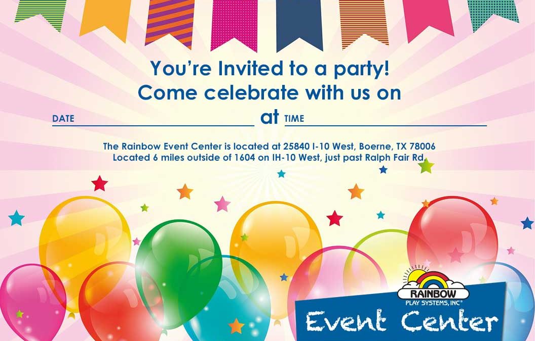 Planning on hosting a party at the Rainbow Event Center? Need a quick invitation to send out?